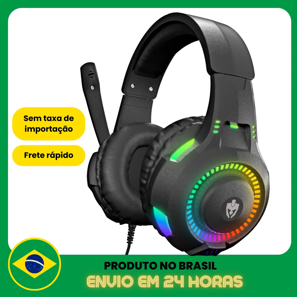 Headset Gamer RGB LED para PC – Som Imersivo e Design Iluminado
